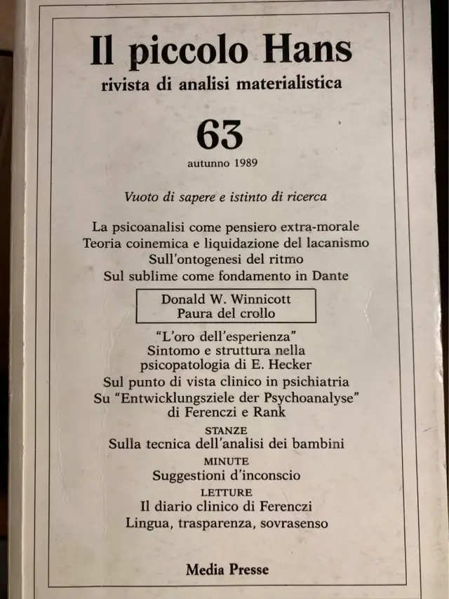 Il piccolo Hans. Vuolto di sapere e istinto n. 63 autunno 1989